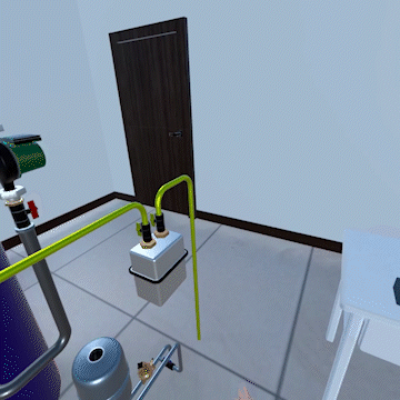 Wir begannen mit dem Prototyp, indem wir bestimmten Teilen des 3D-Modells virtuelle Joints und Triggerbereiche hinzufügten. Für jedes Teil, das aufgegriffen werden kann, erstellten wir maßgeschneiderte Handposen, d. h. für Rohre, Clipboard, Smartphone. Dabei werden alle Knochen und Gelenke einer virtuellen Hand in die korrekte Pose gebracht, die für das greifen des einzelnen Objekts erforderlich ist.